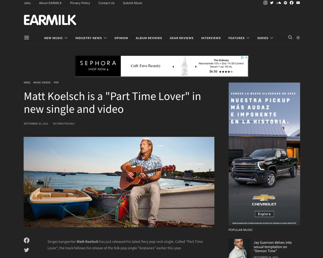 “Koelsch Releases Summer Vibes Single, Perfectly Aligned. From the instrumentation to his soft indie/folk vocals to it’s catchy lyrics, Perfectly Aligned is ideal for a day laying out in the sun.”
